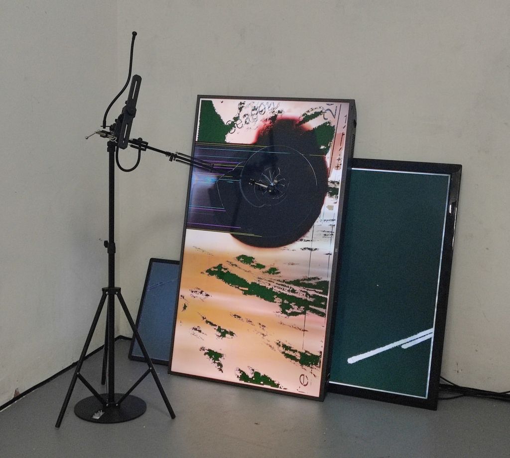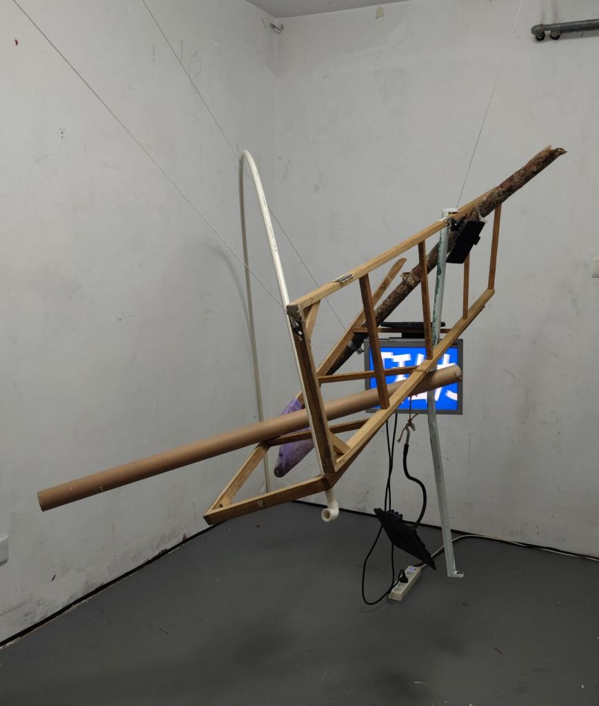 インスタレーション|木、プラスチック、鉄管、モニター、ほか